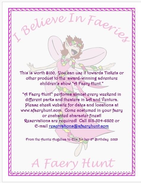 A Gift Certificate from A Faery Hunt! Give a unique gift to one of your favorite faery enthusiasts. Your personalized Gift Certificate will be emailed to you.